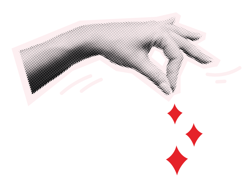 a red drawing of a sunset framed by two hands creating a box around it